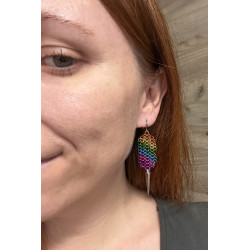 Tyto extrémně lehké náušnice jsou vyrobené z eloxovaných hliníkových kroužků několika barev a zakončené akrylovým hrotem.