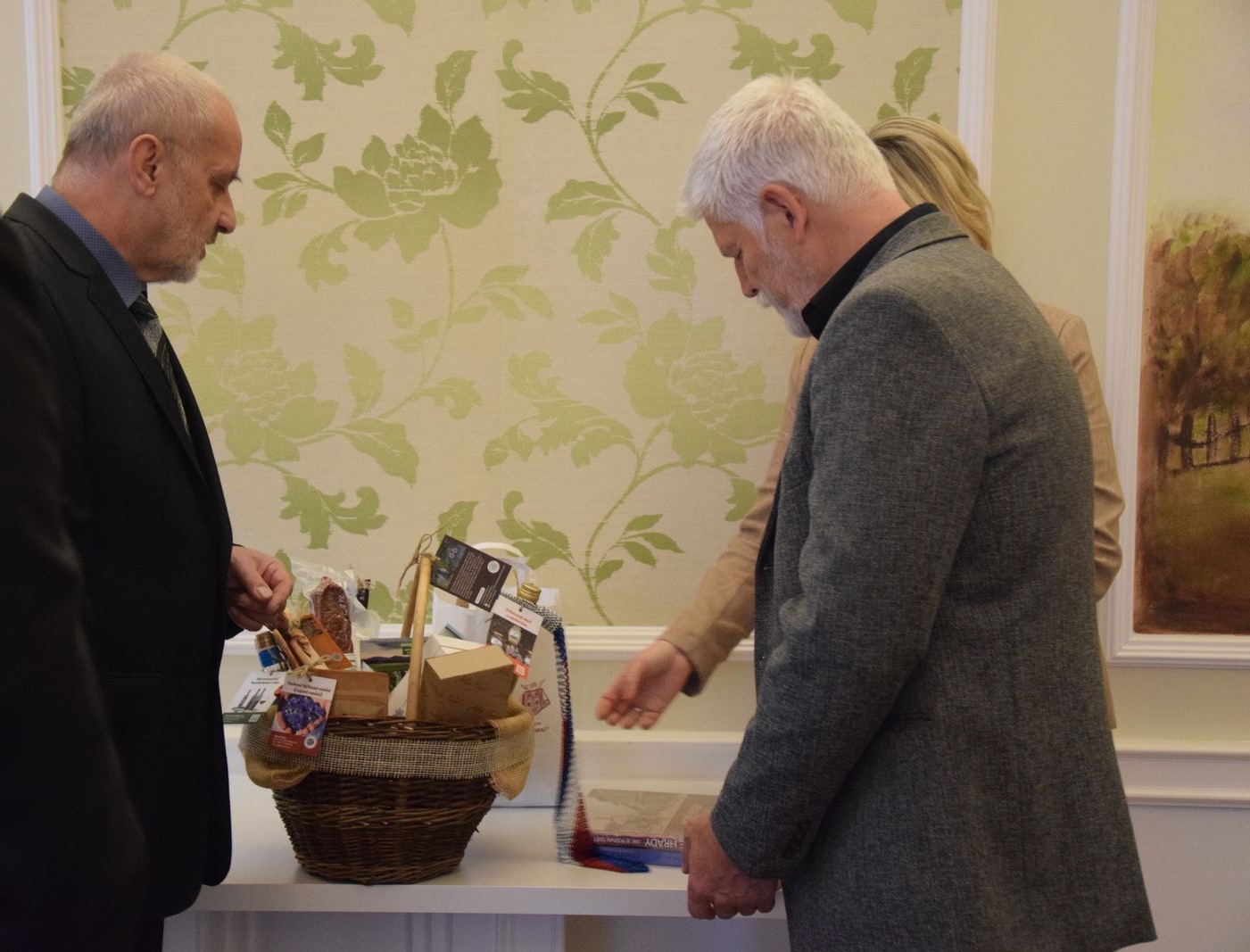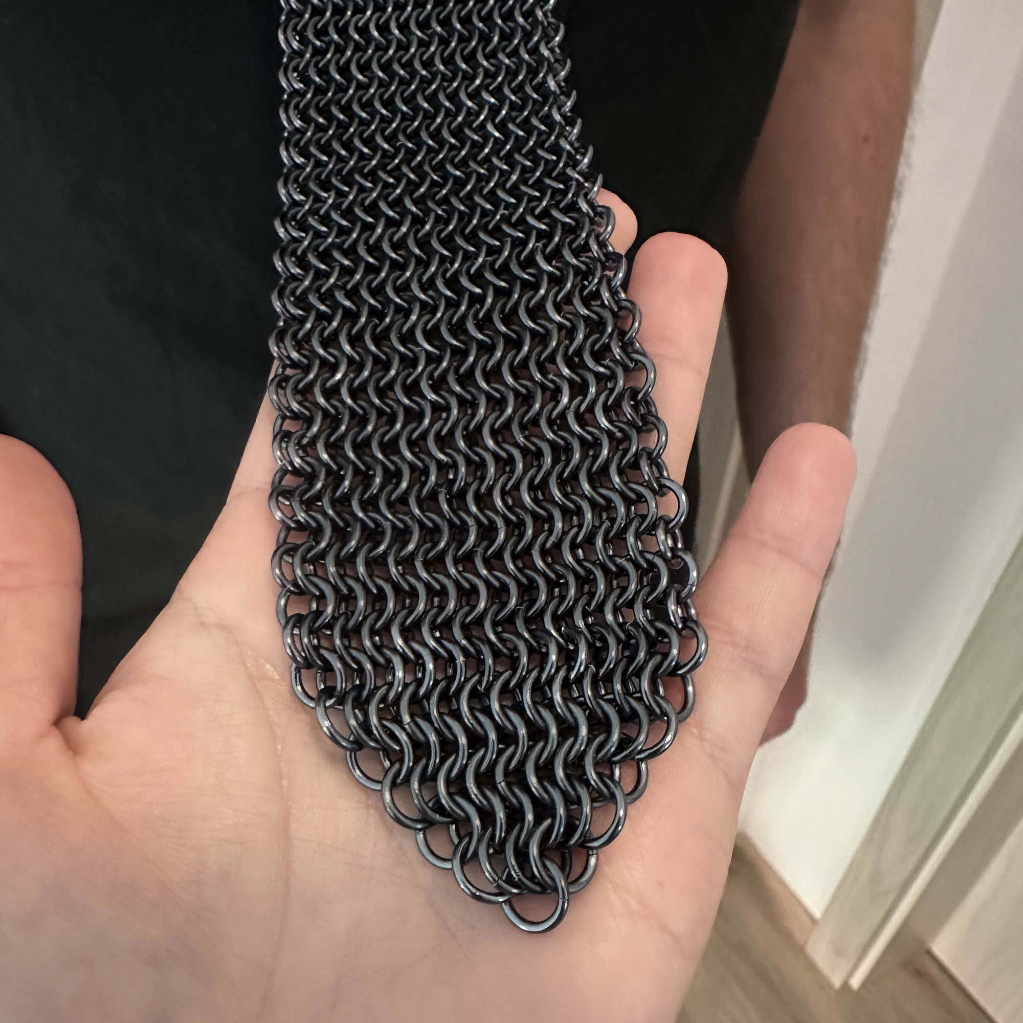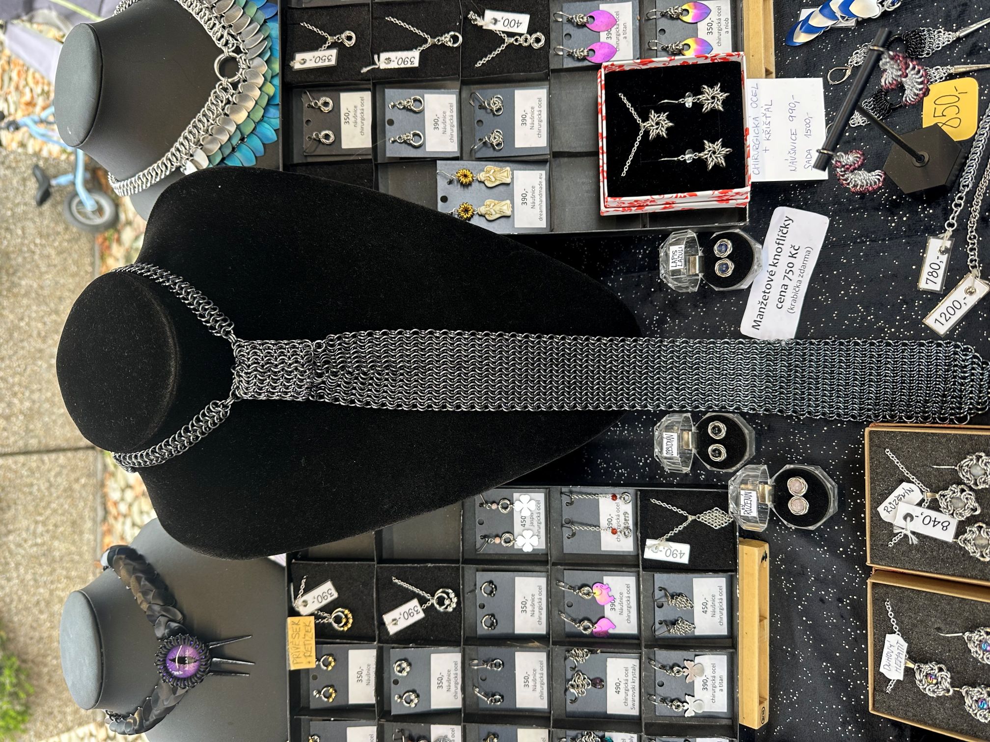 V srpnu si navíc město odvezlo vystavovanou kravatu z galerie, takže jsem rychle vyráběla kravatu novou, aby nebyla na výstavě dlouho prázdná pana. Kravatu dostalo darem od města Nové Hrady stejnojmenné město (Jaunpils) v Lotyšsku. Novou kravatu jsem tentokráte vyrobila v antracitové barvě a vypadala fakt skvěle.