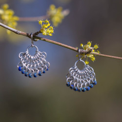 Tyto velice lehké náušničky jsou vytvořené z eloxovaných hliníkových kroužků stříbrné barvy. Doplněny jsou drobnými skleněnými korálky tmavě modré barvy. Vzhled těchto korálků trochu připomínají minerál lapis lazuli.