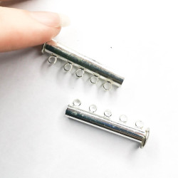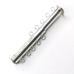 Světlé stříbrné řadové magnetické zapínání z obecného kovu bez obsahu niklu. Skládá se ze dvou dílů. Každý díl má 5 dírek. Je vhodné na široké náramky.