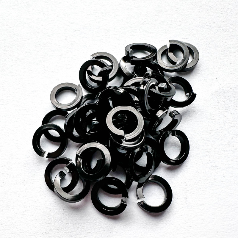 Spojovací kroužky z eloxovaného hliníku černé barvy. Řez drátem je čtvercový.