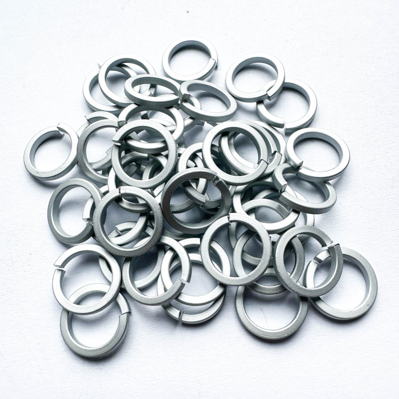 Spojovací kroužky z eloxovaného hliníku ledově stříbrné barvy. Řez drátem je čtvercový.