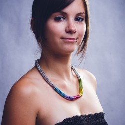 Díky použitému materiálu je náhrdelník překvapivě lehký, barvy jsou výrazné a stálé. Náhrdelník je vhodný pro alergiky.