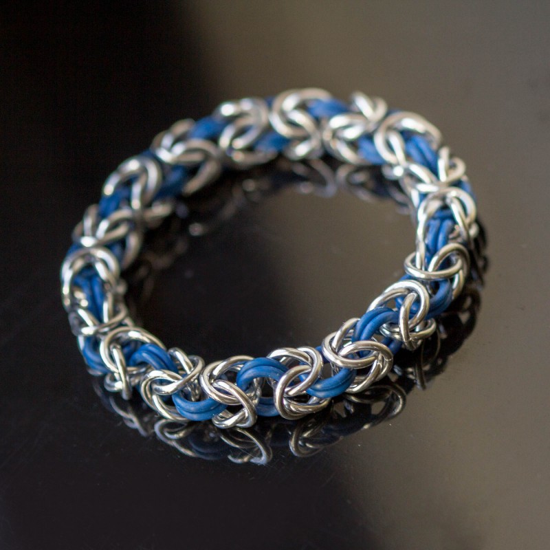 Je vyrobený z eloxovaných kroužků stříbrné barvy a a kaučukových kroužků. Tyto gumové kroužky nepuchří a nepraskají jako klasické gumičky.