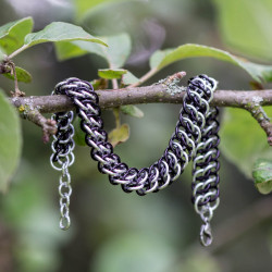 Výrazný masivní náramek pro pány. Je vytvořený z eloxovaných hliníkových kroužků.