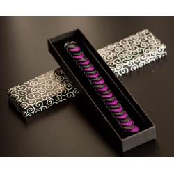 Zapínání je formou karabinky z chirurgické oceli s černou galvanizací a pěti kroužků, díky kterým je možné nastavit délku přesně na ruku.