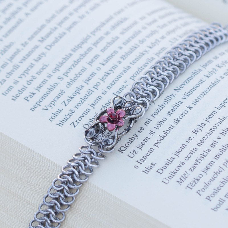 Tento elegantní náramek jsem vyrobila z eloxovaných hliníkových kroužků stříbrné barvy.
