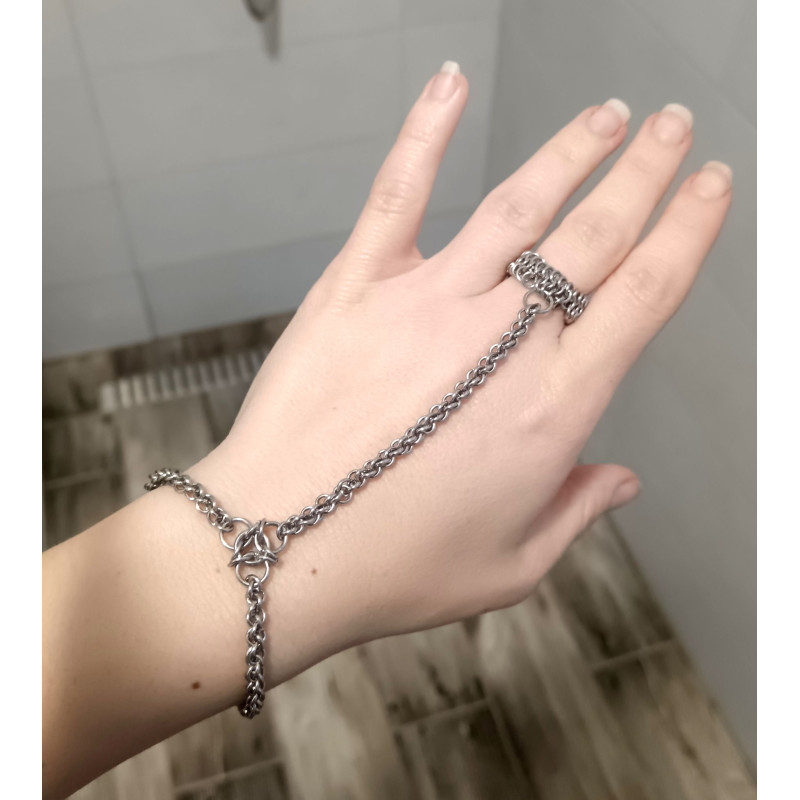 Délka řetízku od prstýnku k náramku je 12 cm.