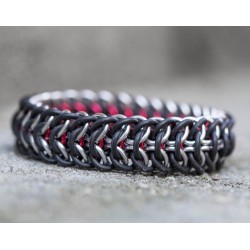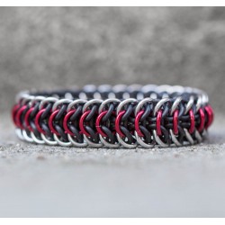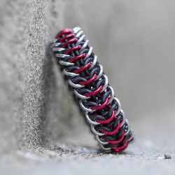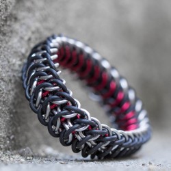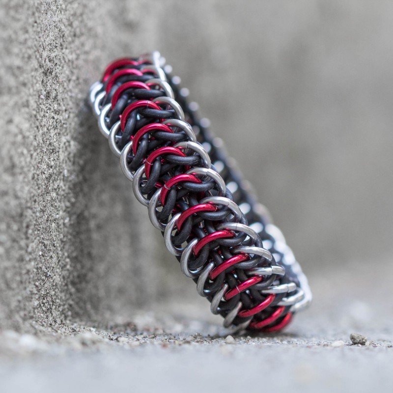 Je vyrobený z eloxovaných kroužků stříbrné barvy a gumových kroužků černé barvy. (U červené varianty jsou navíc použité kromě stříbrných i červené kroužky.)