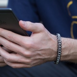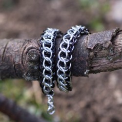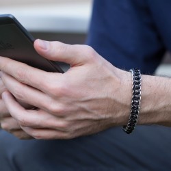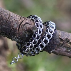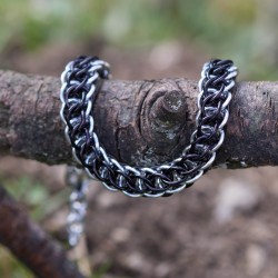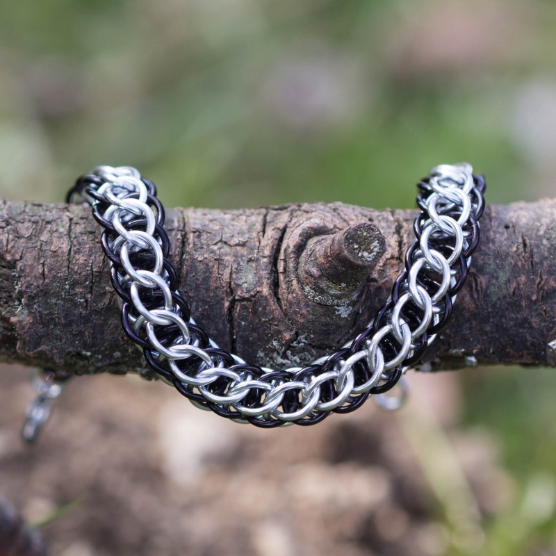 Náramek hodící se na pánskou i dámskou ruku je vytvořen eloxovaných kroužků černé a stříbrné barvy. Náramek je oboustranný. Z jedné strany je více černý a z druhé více stříbrný.