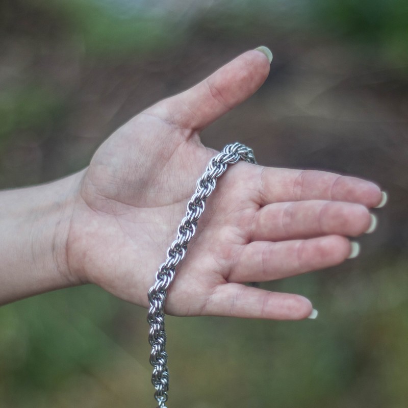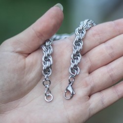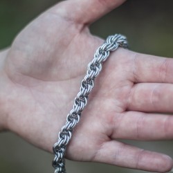 Náramek hodící se na pánskou i dámskou ruku je vytvořen z eloxovaných kroužků stříbrné barvy. Díky použitému materiálu je velice lehký a nemění svou barvu.