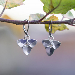 Drobné šupinové náušnice ve tvaru kytiček jsem vyrobila z eloxovaných hliníkových kroužků stříbrné barvy a maličkých šupinek. Kromě ledové stříbrné varianty jsou všechny šupinky lesklé. Jejich barvu si můžete zvolit.