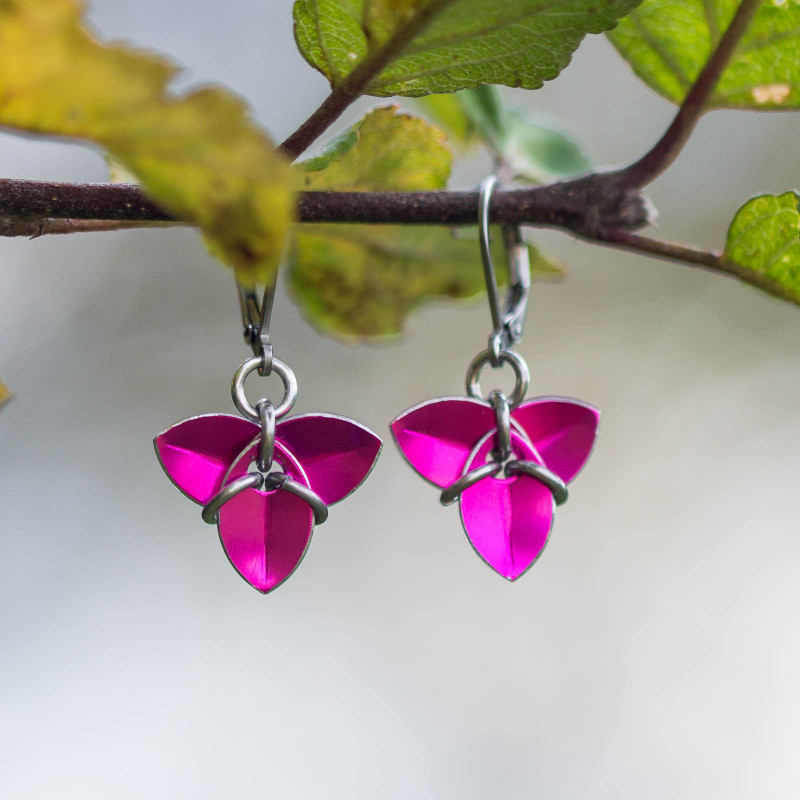 Drobné šupinové náušnice ve tvaru kytiček jsem vyrobila z eloxovaných hliníkových kroužků stříbrné barvy a maličkých šupinek. Kromě ledové stříbrné varianty jsou všechny šupinky lesklé. Jejich barvu si můžete zvolit.
