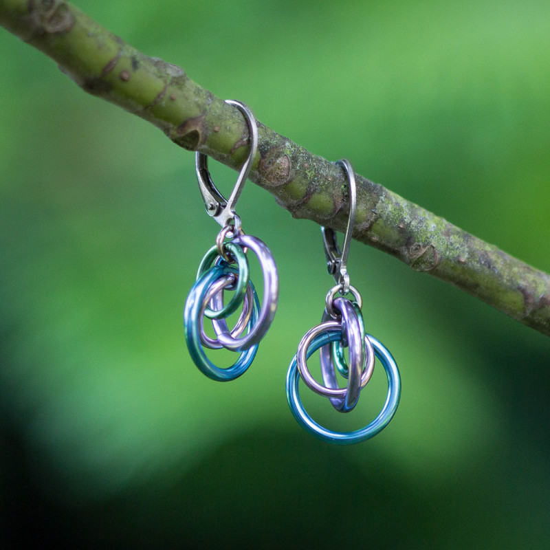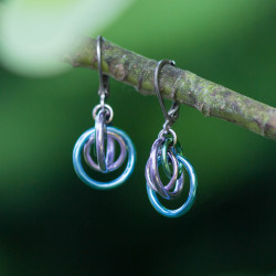 Jak řekla jedna moje zákaznice, kroužky na těchto náušnicích žjijí svým životem. Tyto výrazné a přes to lehoučké náušnice jsem vyrobila z eloxovaných hliníkových kroužků několika barev.