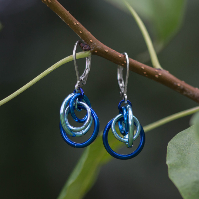 Jak řekla jedna moje zákaznice, kroužky na těchto náušnicích žjijí svým životem. Tyto výrazné a přes to lehoučké náušnice jsem vyrobila z eloxovaných hliníkových kroužků několika barev.