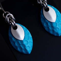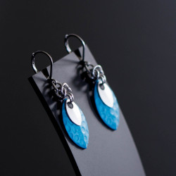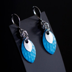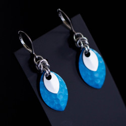 Jednoduché, ale nápadité náušničky jsou vytvořeny ze stříbrných eloxovaných hliníkových kroužků a matných šupin dvou velikostí. Malé jsou matné stříbrné. Větší mají 3D strukturu a barvu těchto šupin si můžete zvolit.