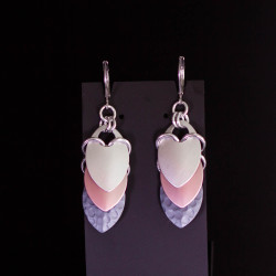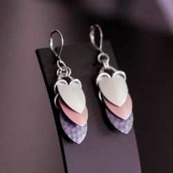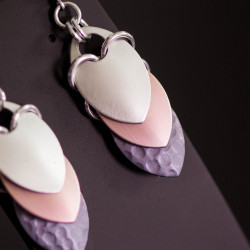 Náušnice jsem vyrobila z kroužků a matných šupin z eloxovaného hliníku v ledově stříbrné, světle růžové a šedé barvě. Šedé šupiny mají 3D strukturu.