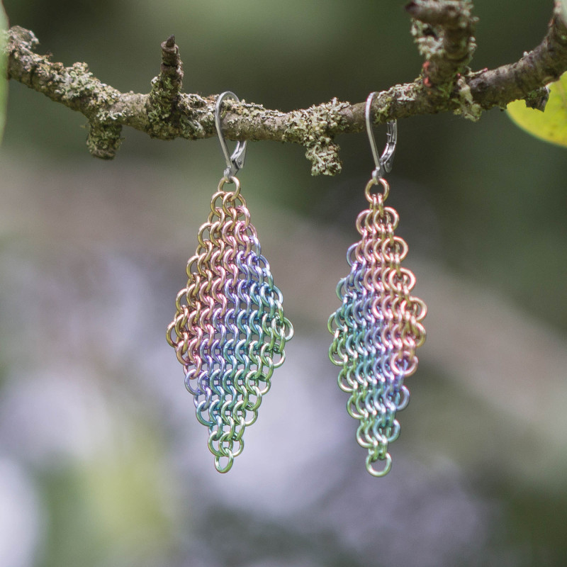 Tyto extrémně lehké náušnice jsou vyrobené z eloxovaných hliníkových kroužků několika barev.