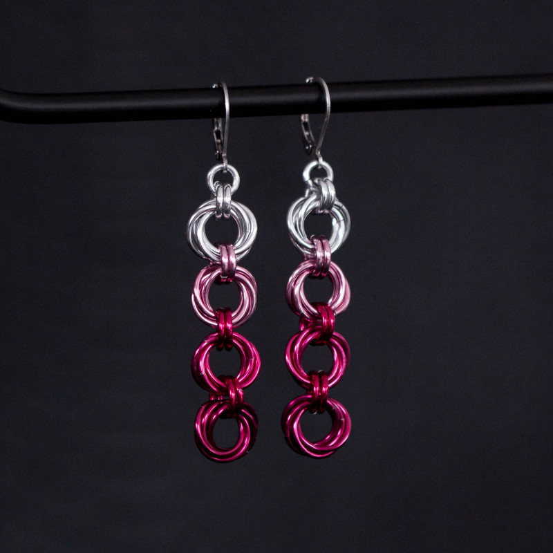 Tyto náušničky jsou vytvořeny z eloxovaných hliníkových kroužků.