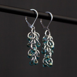 Nepřehlédnutelné náušničky jsou tvořeny z eloxovaných hliníkových kroužků stříbrné barvy a doplněné skleněnými korálky.