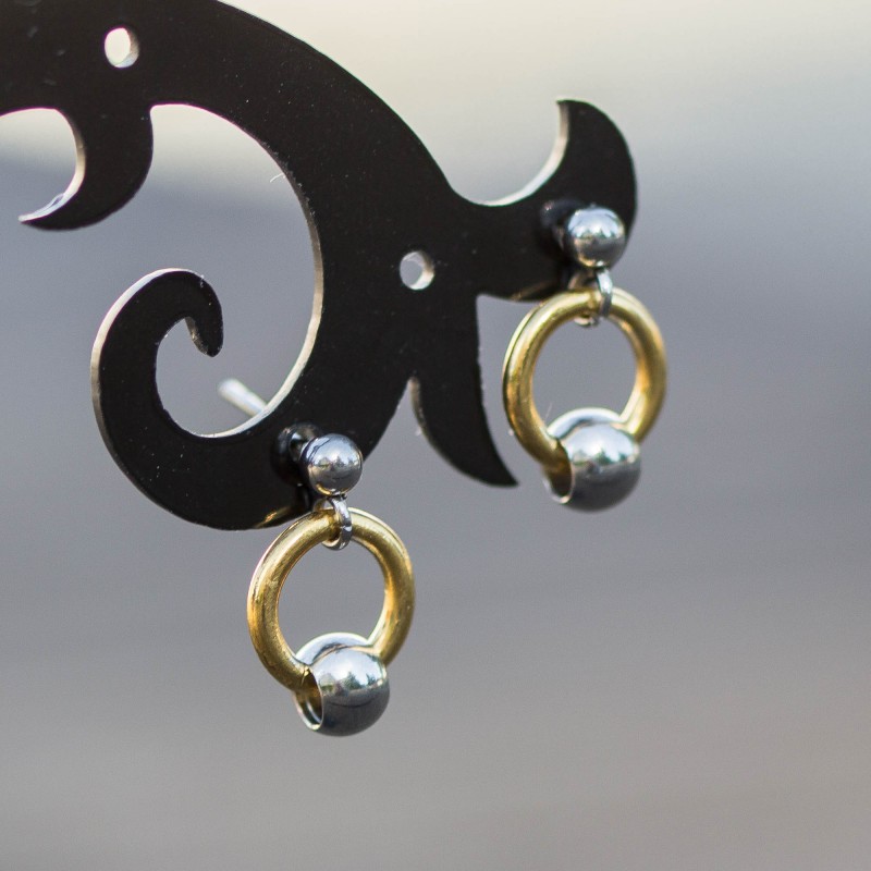 Jsou zavěšeny na puzetkách z chirurgické oceli. Ze stejného materiálu jsou i zarážky.
