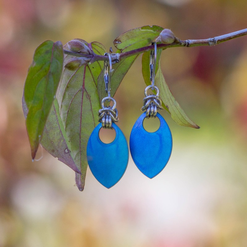 Náušnice jsou vyrobené z kroužků z vysoce kvalitní chirurgické oceli. Náušnice zdobí šupiny z titanu, které působí jako malované. Žádná šupina není plně stejná.